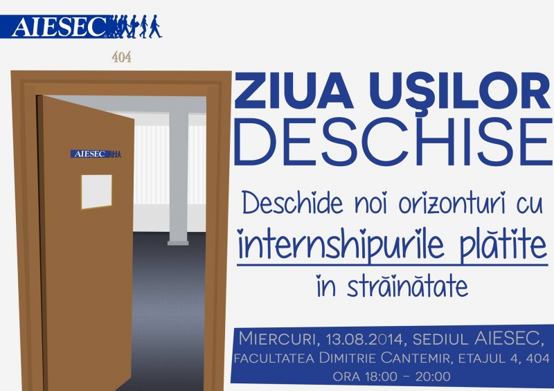 Fie că îți dorești să pleci într-un internship în străinătate sau pur și simplu vrei să vezi care e faza cu aceste internship-uri, omuleții de la AIESEC te așteaptă cu brațele (și ușile) larg deschise, să-i întrebi despre posibilitățile de a pleca, cât în lună și în stele!