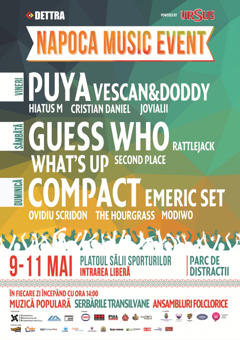 Ai urechile pregătite pentru a asculta muzică bună? Află că DETTRA Events împreună cu Consorțiul Organizațiilor Studențești din Cluj, Leader’s Alliance și OmniPass pun în mișcare clujenii pe platoul Sălii Sporturilor Horia Demian din Cluj-Napoca, în perioada 9-11 Mai 2014, cu ocazia celei de a XII-a ediții de Napoca Music Event.